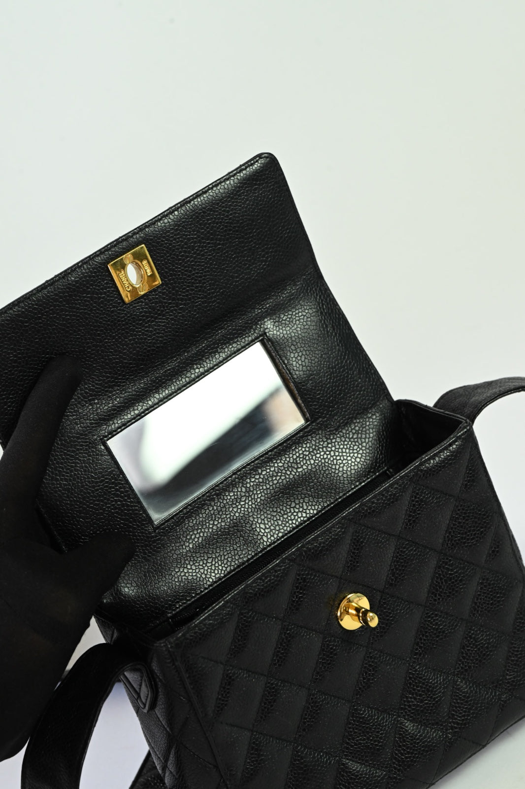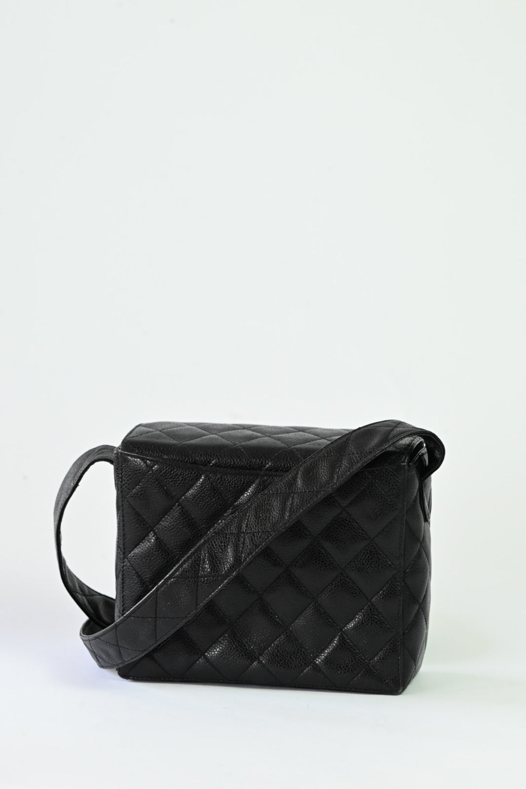 Bolsa Chanel Vintage preta em couro caviar com ferragens douradas ouro 24k.